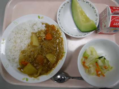本日の献立 カレーライス 牛乳 野菜の甘酢づけ メロン