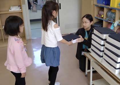 1人1人手渡された後、番号を確認したり、箱の中身を確認したり。