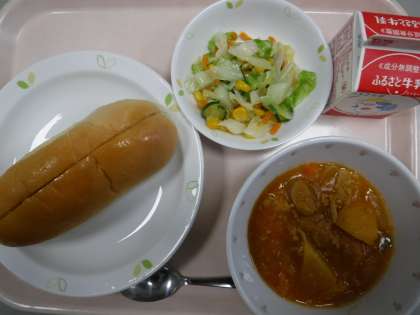 本日の献立 マーマレードサンド 牛乳 ハンガリアンシチュー コーンサラダ