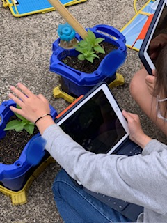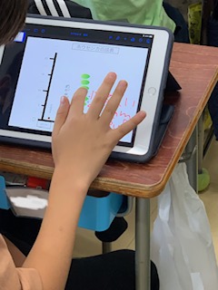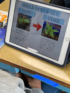 3年生の理科です。ホウセンカの観察記録をしています。観察の視点を話し合い、タブレットにあるkeynoteを活用してスライドとしてまとめていきます。