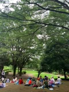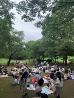 楽しみにしていたお弁当タイム。友達と一緒に笑顔いっぱいで食べ始めました。
