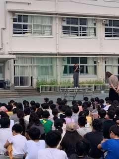 全校朝会を行いました。6月は「ふれあい月間」です。毎回の朝会のテーマは、「友達との温かい関係づくり」に関する話でした。