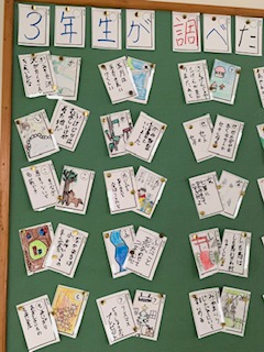3年生は、調べた地名や行事から世田谷カルタを作りました。2階の「日本語広場」に掲示しています。