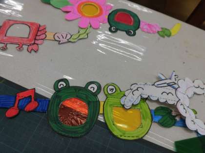 3年生は夏にぴったりのサングラスを紙と色セロハンでつくりました。