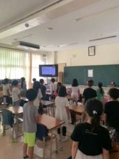 校長より1学期を振り返り、なりたい自分に近づくために、人との関わりの中での心と態度、学びに向かう心についての話をしました。児童代表の言葉は4年生でした。1学期の自分の成長について堂々と話しました。校歌を歌いました。各教室から美しい声が響きました。