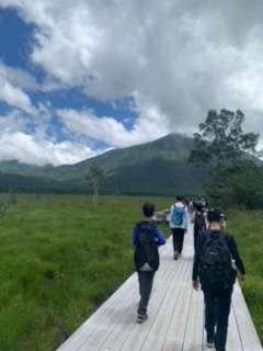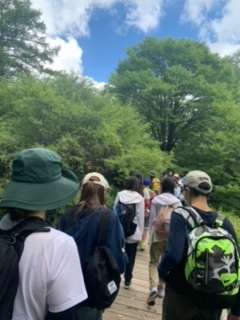 木道を通って戦場ヶ原のハイキング。男体山が綺麗に見えました。赤沼でお弁当を受け取り、石楠花橋でお弁当です。よく歩きました。