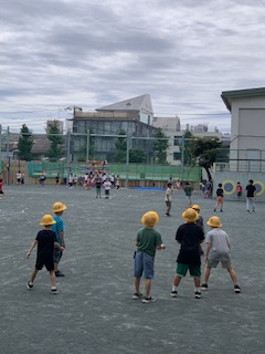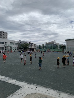 連日の猛暑日に外遊びができませんでした。「今日はWBGTの値が高いので外遊びができません。校舎内で過ごしましょう。」の放送が続いていましたが、今日は違いました。外遊びができると分かった途端に子どもたちの歓声が上がりました。