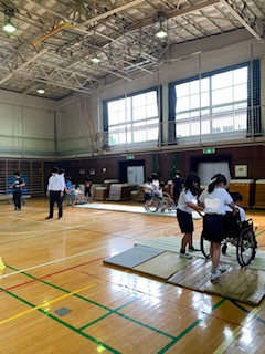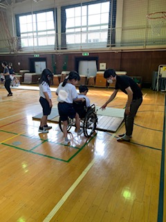 車椅子体験では、「乗っているときどんなふうにみえるかな」、「どんなことが困るのかな、困っているのかな」と考えながら体験しました。