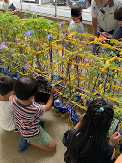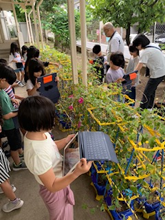1年生もタブレットの扱いにずいぶん慣れてきました。アサガオの記録を写真で撮ってためています。記録がこれからの学びにつながっていきます。