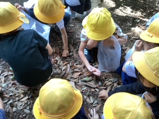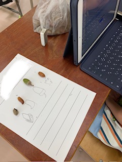 1年生は、生活科の時間に子どもの広場公園に行き、ドングリ拾いをしました。夢中になってたくさんのいろいろなドングリを拾いました。学校に帰ってきてから、ドングリをよく見て観察カードにかきました。