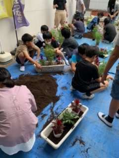 飼育栽培委員会では、世田谷花卉圍芸組合の方にお越しいただき、レクチャーを受けてプランターに花を植えました。秋の花が正門辺りを彩ります。
