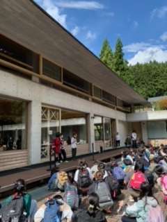 予定より30分早くふじやまビレッジに到着しました。開室式をしました。到着するや否や、日が差し出しました。思っていたよりは暖かいです。これから友達と協力しながらたくさんの活動を行います。
