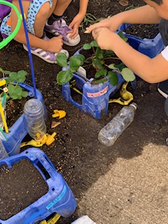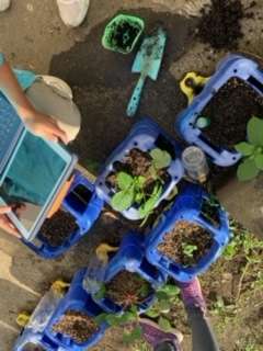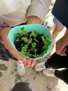 校内を回っていると、2年生に「きて、きて、見て、見て」と呼ばれました。1学期に生活科で夏野菜を育ててきた子どもたちは、今度は秋野菜を育ててる計画を立てて育てています。種から育てている子がいたり、苗を用意している子がいたり、自分で育てたい野菜を選びました。1学期の学びを生かして取り組んでいます。
