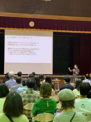 3時間目には保護者・地域の皆様を対象に、国際大学グローバル・コミュニケーション・センター(GLOCOM)准教授の豊福晋平先生にご講演をいただきました。家庭で学ぶ、取り組むデジタル・シティズンシップに関してもお話を伺うことができました。