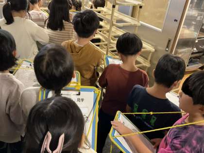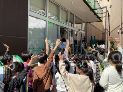 3年生の社会科の学習で、近隣のスーパーマーケットへ見学に行きました。バックヤードや売り場を見学させていただき、商品を店頭で販売する前に行う作業や売り場の様子、並べ方の工夫、働く方の願いなどたくさんの説明やお話を伺うことができました。質問もたくさんすることができました。