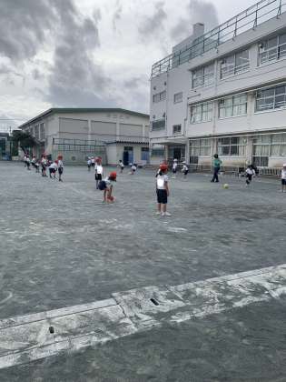 校庭体育では、ボールを使った運動と長縄跳びに取り組んでいます。随分上手になりました。