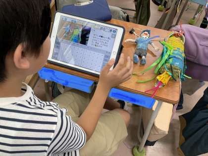 図工の時間に2年生の教室に訪れると、「みてみてコール」があちらこちらから聞こえてきます。作品づくりを楽しんでいる様子が分かります。展覧会場でどのように展示されるかお楽しみに。