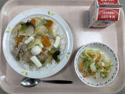 本日の献立 中華丼 牛乳 キャベツと大根のサラダ