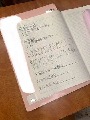 3年生の算数。個々の学びの必要性に応じで、タブレットにローマ字入力したり、タブレットに手書き入力したり、ノートにまとめたりしています。