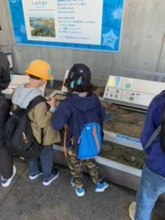 グループごとに見学しています。2年生がリーダシップを発揮しています。1年生も2年生と一緒で安心して興味をもって見学しています。