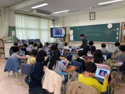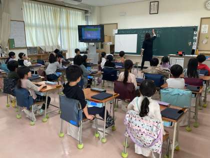 水曜日は響の学び舎合同研修会が行われました。中丸小学校、旭小学校、駒留中学校の教職員が本校の授業を参観し、授業改善の視点で協議を行いました。写真は1年生の授業の様子です。