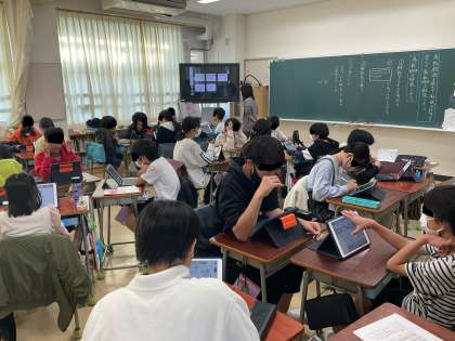 授業改善の視点の一つは「協働的な学び」です。各学級では、自分の考えを友達と出し合って、新たな考えをつくっていったり、広げたり、深めたりする姿が見られました。写真は3年生と6年生の教室です。
