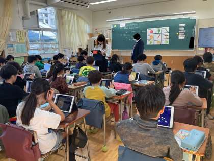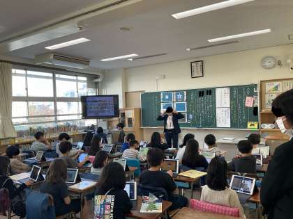 授業改善のもう一つの視点は、ICTの効果的な利活用です。この研修会では、全ての教室で、タブレットの効果的な活用を意識した授業がされました。写真は2年生、4年生、5年生の様子です。