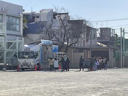 学校では、様々な状況や場面の災害を設定し、月に一度避難訓練を行なっています。その中で、毎年4年生は、世田谷区から「なまず号」を派遣していただき、起震車による地震疑似体験訓練を経験しています。本日、「揺れを感じたら、机などの固いものの下に潜り、低い姿勢で揺れがおさまるまで待つ」訓練を行いました。
