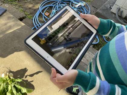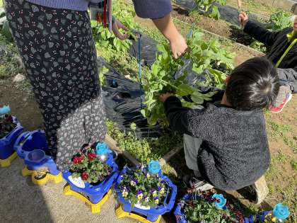 2年生は、各自や裏の畑で野菜を育てています。今日はその様子を見にいきました。大きく育っています。各自で育てている野菜は、植えた頃からタブレットに記録をためています。写真や文字、音声での説明も入れています。