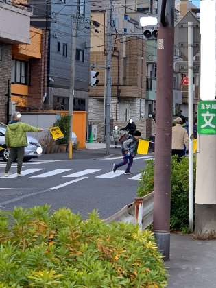 今日は土曜授業日です。学校前の横断歩道では、毎日主事さんが旗を持って交通安全を見守っています。また、通学路各所では、地域の方々も危ない箇所に立っていただいています。土曜日授業の日には、おやじの会「繋組」のみなさんが交通安全を見守ってくださっています。地域・保護者の皆さんに守られている幸せな学校です。