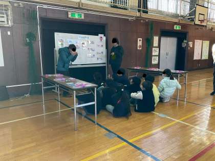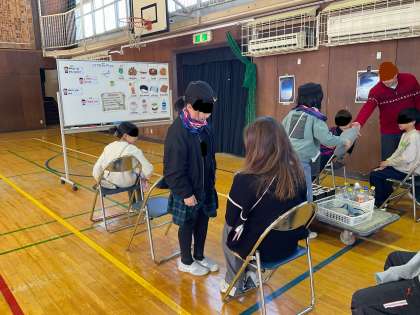 ALTの先生方5人が来校し、英語体験の出前授業が行なわれました。英語を使うシチュエーションを用意していただき、英語のフレーズを使って会話を楽しむ活動となりました。「初めは緊張したけれど、すごく楽しい。英語をもっと使って話をしたい。」などの感想が聞かれました。