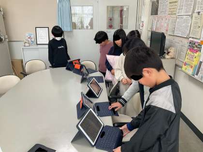 4年生は、総合的な学習の時間にSDGsに関連して自分たちで課題をもち追究してきました。3学期は自分たちが実行できることに取り組んでいきます。校内や地域に発信したいことについて、校長室に相談に来るグループもあります。自分たちの活動を何とかして実現させるためにグループで役割分担をしながら今までの学びと活動したいこと、なぜそれが必要なのか校長にプレゼンをする子どもたちです。