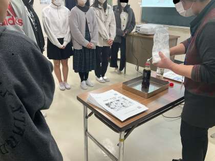 毎年6年生を対象に行います。講師は本校の薬剤師の先生です。今回は、市販の薬を使用する際に、飲み合わせなども考える必要があることを実験を通して教えていただきました。