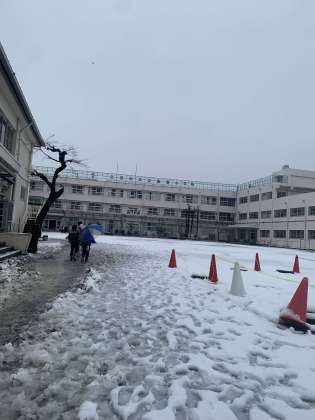 月曜日は大雪になり、火曜日の登校が心配でした。朝、主事さんと教職員で子どもたちが安全に歩けるように雪かきをしました。登校してきた子どもたちは、校庭の様子を見て、「雪がこんなに積もっている。」と喜んでいましたが、残念ながら水分を多く含んでいて、びちょびちょの雪。雨も降って溶けてしまいました。