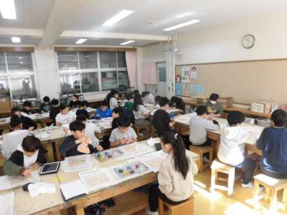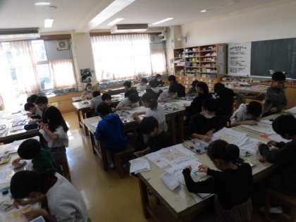テーマは鳥です。卒業する6年生が新しい世界へ羽ばたいていってほしいという