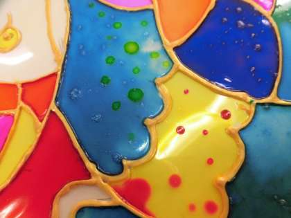 グラスデコが乾いたら、洗濯糊に凧絵具を混ぜた色糊を