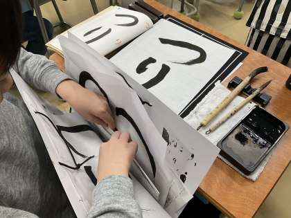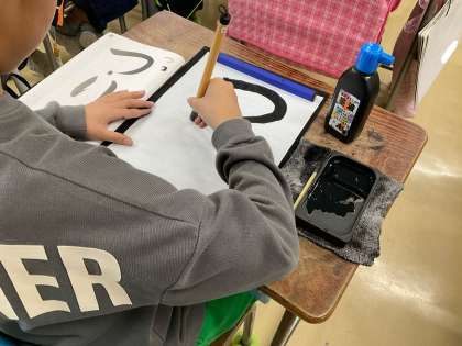3年生から始まった毛筆の学びです。今日は、ひらがなの曲がりを練習しました。めあてをを教師とともに書いて確認した後に、各自で練習をしました。曲とはらいの筆使いを意識しながら上手に書き上げることができました。