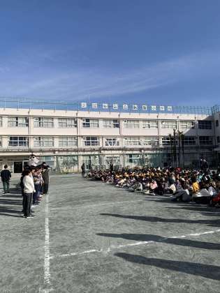 久しぶりに全校児童が校庭に集まって、児童集会を行いました。集会委員会の児童が司会やルール説明を行い、みんなで楽しく「じゃんけん列車」をしました。集会委員会の児童が、終わりの言葉を言う終わると自然に拍手が起こり、みんなが楽しんだことが伝わってきました。