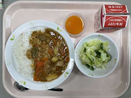 チキンカレーライス 牛乳 グリーンサラダ キャロットゼリー