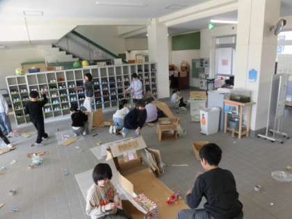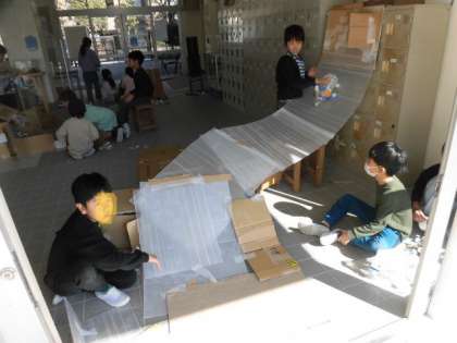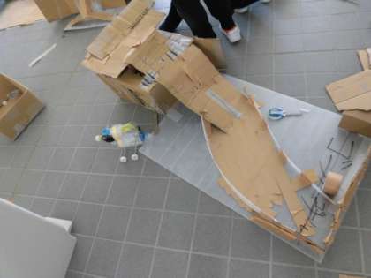 最後には、段ボールやプラスチック段ボールを組み合わせて、