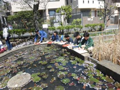 それぞれのお気に入りの場所を色鉛筆やコンテ、クレヨンなど描画材料を自分で選んで表し方を工夫しました。
