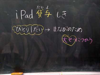 1年生は、担任の先生から1人1台のiPadを受け取り、しっかり話を聞いて準備万端です!