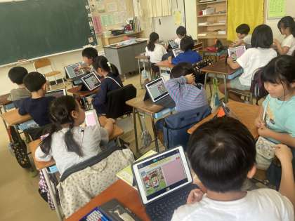 3年2組では、対話の練習として、「2人組間違イ探し」を行いました…通常は、2つの絵を見比べて、1人で間違えを探す遊びですが、隣の友達とペアを組んで、片方の絵だけを見て、言葉で伝えながら自分の絵との違いを見つけました。「あれ、私のは⚪︎⚪︎だよ」「そんなところが違うのか」と対話しながら楽しみました。2人で協力するよさ、相手に伝わるように言葉にする大切さを実感していました。