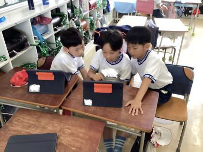 児童たちはビデオ会議アプリを使い、東京都の様子と福井県の様子を交流しました。自分たちの住んでいるところとは違う地域の様子を知ることができ、そのほかの都道府県を調べる意欲を高めました。
