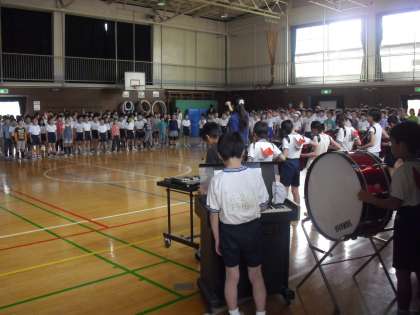 運動会に向けて「運動会の歌」「校歌」「ゴーゴーゴー」を元気よく歌いました。