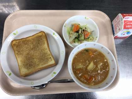 本日の献立 セサミトースト 牛乳 ハンガリアンシチュー ツナサラダ