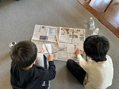 紙やすりで端材を思い思いの形に削って、自分だけの作品を作り上げました。