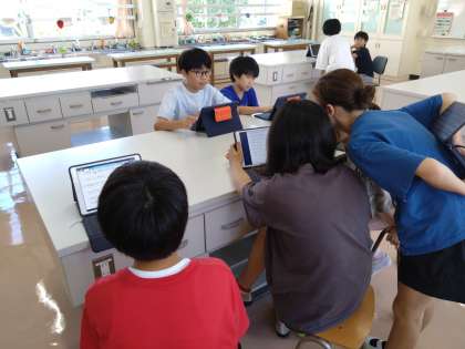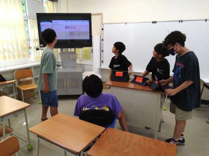 翻訳アプリで発音を確認しながら、友達と協力しながら、がんばっています!