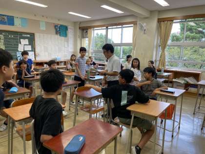 三宿中学校では、1組数学・2組体育の授業体験をしたあと