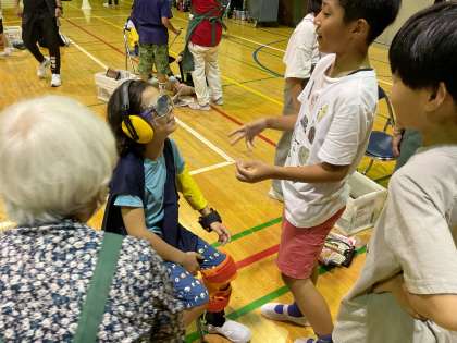 総合的な学習の時間では、福祉について学習をしています。今回は車椅子体験と高齢者擬似体験をしました。「車椅子を押すとき坂道や段差のところが大変だった。」「視力が低下すると今まで簡単にできていたことできなくなった。」など車椅子に乗っている方がどのようなサポートをして欲しいのか、ご高齢の方がどのようなところに困り事を感じているのかを身をもって感じることができました。今回の気付きや学びをこれからの総合的な学習の時間を自分事として学習をすすめていけるようにしていきます。